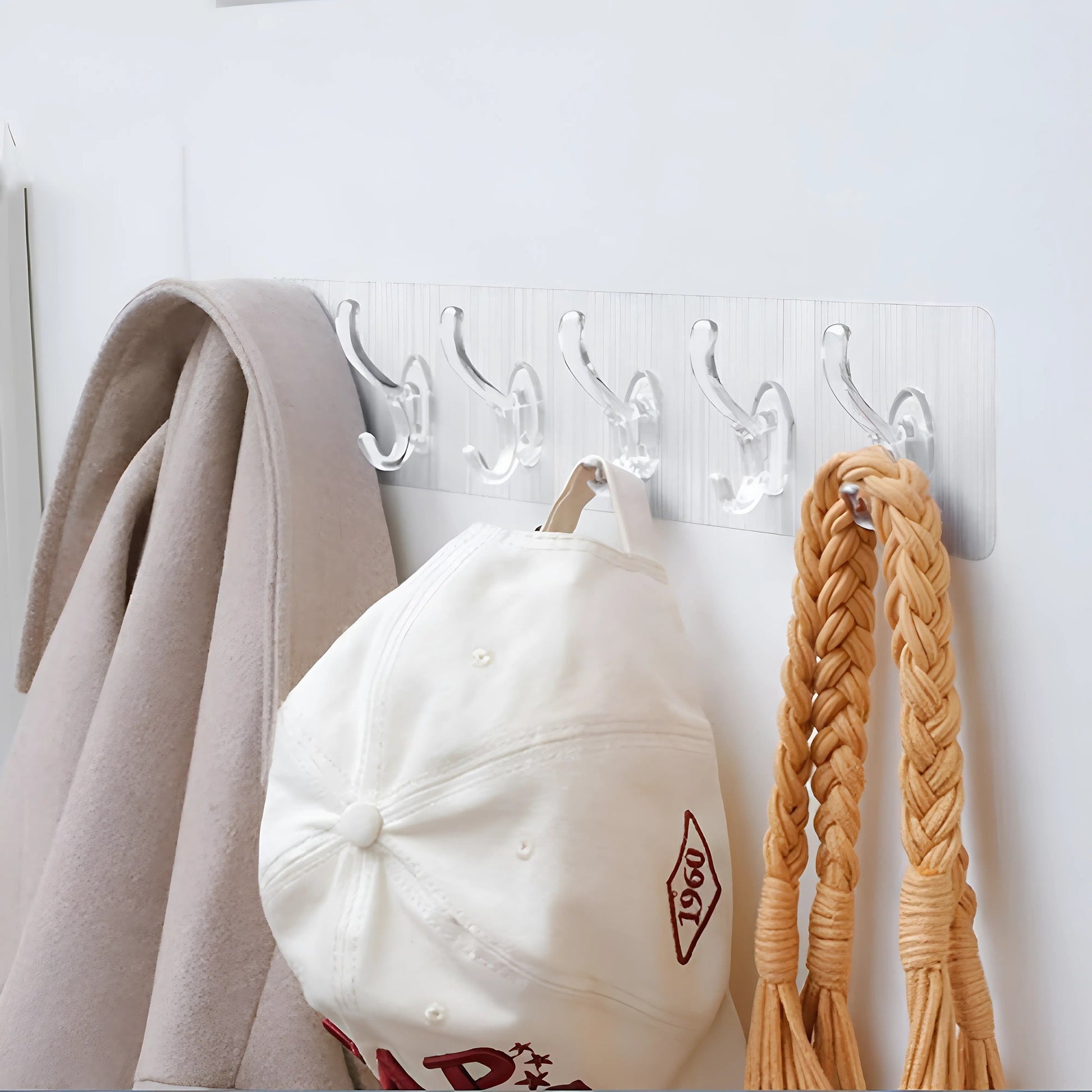 (3 قطع) علّاقات الحائط اللاصقة الشفافة 6 في 1